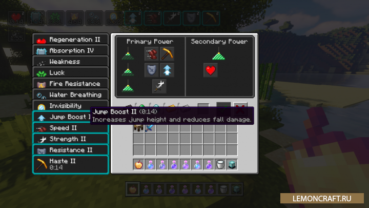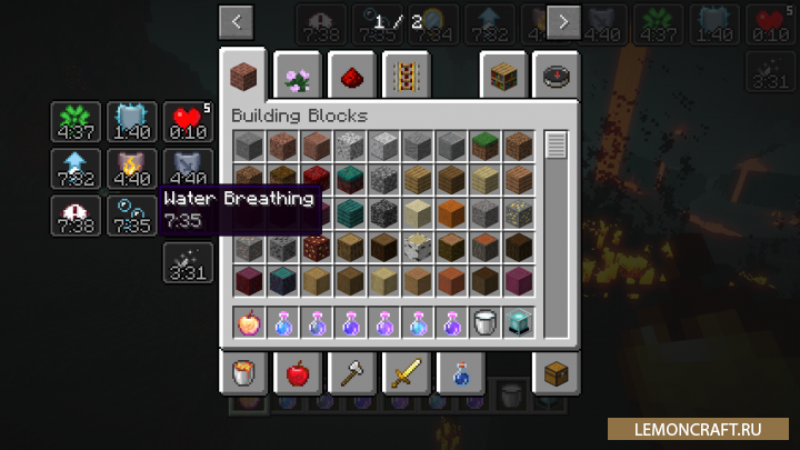 Мод на стильные эффекты Stylish Effects предназначен для полного преображения информационных блоков информирующих об эффектах. Теперь у вас появился выбор среди, как больших табличек, так и маленьких, которые вместят на своей площади только иконки. Данная система вывода совместима с JEI и имеет очень тонкие настройки, что позволит вам подобрать именно то что нужно.